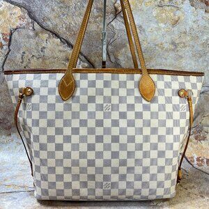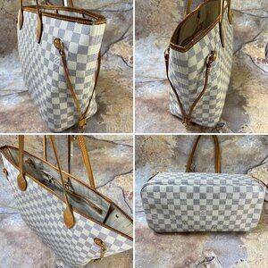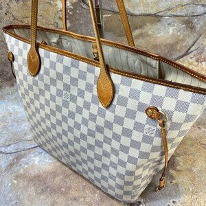 Louis Vuitton Neverfull MM Shoulder Bag Damier Azur Tote Bag w/ Dust Bag, Box