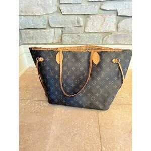 Stylish and spacious Louis Vuitton Neverfull MM bag with monogram canvas and leather trim. Perfect for carrying essentials. Requires TLC or repair.