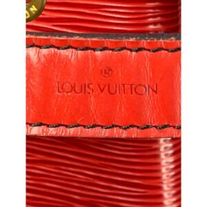LV Noe red epi, vintage louis vuitton bucket, LV shoulder bag, authentic louis vuitton red, epi leather purse, french designer handbag, louis vuitton drawstring bag, made in france red bag, timeless LV classic, collectible Louis Vuitton Noe