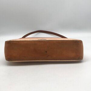 • Exterior: LV lock zipper pull, vachetta leather trim, front pocket