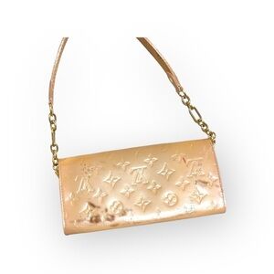 Louis Vuitton will never fail to impress you with its opulent and chic creations. Crafted from Monogram Vernis, this Sunset Boulevard clutch bag is not to be missed. It features an impressive chain and leather resting strap and the gold-tone brand name plaque on the flap. The fabric-lined interior houses a zipper pocket and numerous card slots.all call outs are in the pictures.