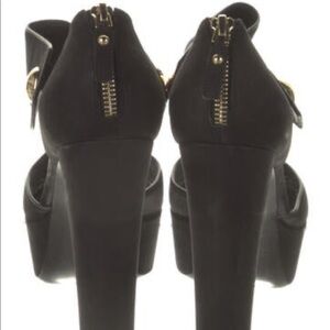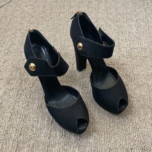 Louis Vuitton Nubuck Gold Button D’Orsay Platform Peeptoe Block Heel Sandal 41