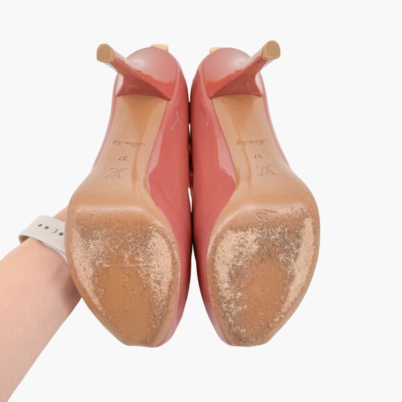 Louis Vuitton Oh Really Lock Pumps EU 37 US 7 Mauve Pink Patent High Heel Peep