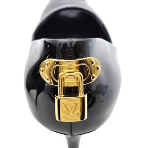 Louis Vuitton Lock It Peep Toe Platform Pumps – Black Patent Leather – Women’s EU 38 / US 7.5 – Made in Italy