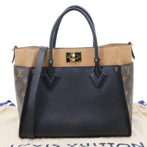 Louis Vuitton On My Side MM Leather Monogram Canvas Shoulder Bag Black