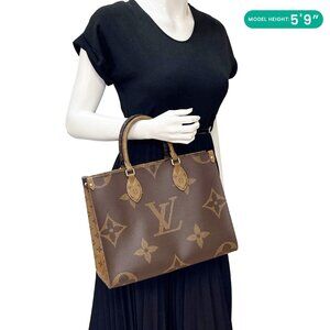 LOUIS VUITTON Onthego MM in Giant Monogram Reverse Canvas combines bold patterns with elegance. Its spacious silhouette makes it ideal for both work and travel needs. Finished with top handles. It offers versatile carrying options.