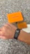 Elegant Louis Vuitton orange box. Includes a stylish black monogram bracelet and card holder.