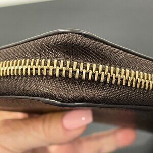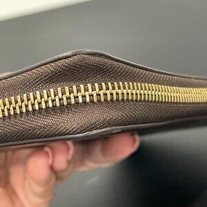 The iconic Zippy wallet looks elegant in Louis Vuitton’s iconic brown monogram with a gold-tone zip and pull. This model opens to reveal a well-organized interior with multiple compartments, a zipped pocket for coins and 12 card slots. Its grained-leather exterior is discreetly embossed with the LV Initials.