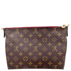 Crafted in iconic Monogram canvas with bold cherry-red leather trim for a refined contrast. Designed as a compact beauty case with a zip-around closure and a spacious interior. A stylish and practical accessory for travel or daily essentials.