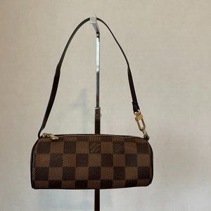 Louis Vuitton Papillon Pouch Mini Hand Bag Damier Ebene Brown (128463)