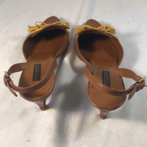 Louis Vuitton Paris Women’s Brown Leather Slingback Kitten Heel Ribbon Mules