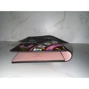 This Louis Vuitton passport holder showcases a charming carousel design on the classic monogram canvas. The playful exterior is complemented by a soft pink interior, featuring multiple card slots for organization. It's in excellent condition and includes the original box and dustbag.