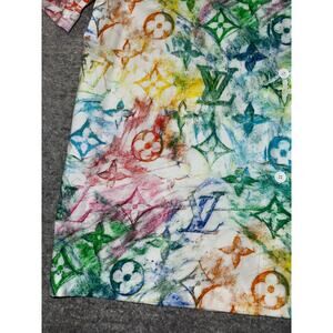 Louis Vuitton Pastel Multicolor Monogram Logo Short Sleeve Button Down Shirt L