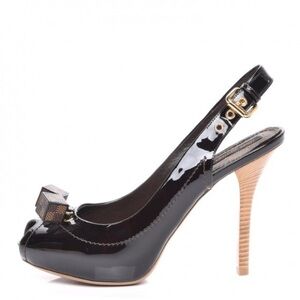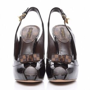 Louis Vuitton Patent Damier Ebene Saint Honore Slingback Heel - 38