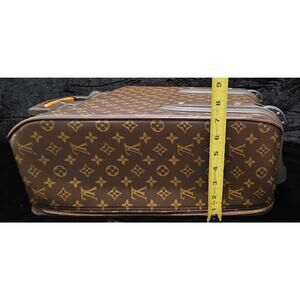 This stylish pre-owned Louis Vuitton Pegase 45 rolling suitcase is crafted in the iconic Monogram canvas. It's the perfect travel companion for those who appreciate luxury and functionality. The spacious interior and smooth-rolling wheels make it a breeze to navigate through airports and hotels.