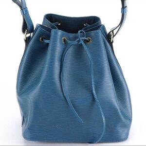 Louis Vuitton Petit Noe Bucket Bag Blue Epi Leather Luxury Drawstring Shoulder