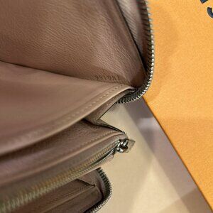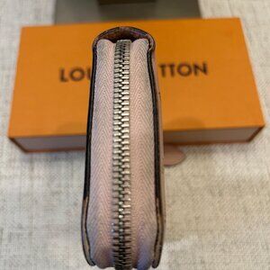 The Zippy wallet is crafted from supple Mahina calf leather with refined Monogram perforations. Named for its secure, all-round zip, this wallet is characterized by its exceptionally functional design: the well-organized interior features a variety of pockets, compartments and card slots. The Zippy wallet can also be carried as a clutch. This wallet/clutch is currently being sold in the LV Stores at $1,500. Own yours today at a fraction of the cost. Comes with the original LV box.