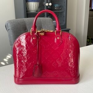 Louis Vuitton Pink Rose Indian Raspberry Leather Monogram Vernis Alma Bag New