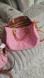 Chic Louis Vuitton satchel in pink with cream monogram. Features elegant gold accents and a stylish charm. Ideal for a luxurious touch. Master quality purchase.