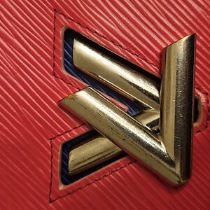 This Louis Vuitton wallet showcases a vibrant pink and blue color scheme, crafted from luxurious Epi leather. The iconic LV twist lock hardware adds a touch of elegance, making it a standout accessory for any occasion.