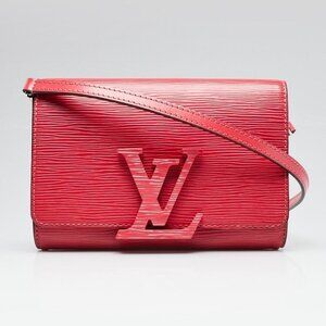 Enhance any look with the feminine and iconic Louise clutch bag. This luxurious bag features an oversize LV logo flip clasp with a removable leather strap. This elegant and modern bag is crafted out of Epi leather and opens to reveal a spacious interior complete with a zip pocket, making this the perfect companion for day or night. Current retail price is $1900.