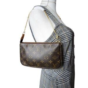 Louis Vuitton Pochette Accessoires Monogram Canvas Shoulder Bag LV Gold Strap