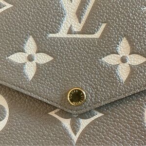 The Pochette Félicie is crafted from supple Monogram Empreinte leather, embossed with Louis Vuitton's iconic Monogram pattern. The bicolor palette brings added refinement to this elegant and versatile design, which features a removable chain, enabling it to be carried on the shoulder or as a clutch, as well as two removable pockets.