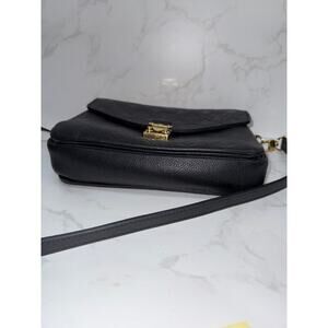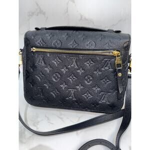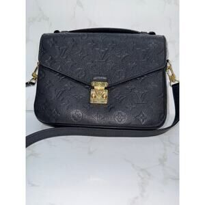 This sophisticated Pochette Metis is crafted from Louis Vuitton's luxurious Monogram Empreinte leather, featuring the iconic LV pattern embossed into supple black leather. The practical design offers multiple carrying options and organized compartments while maintaining the brand's signature elegance. The bag can be worn as a shoulder bag or crossbody, making it versatile for everyday use.