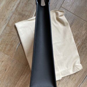 Barely ever used. Overall, this is in excellent condition, with one noticeable defect. The leather tab is coming off of the nylon zipper fabric.