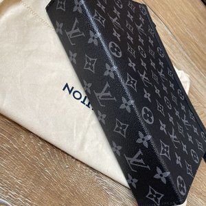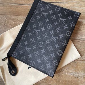 Crafted in our new iconic black and grey Monogram Eclipse canvas, this new MM size for the Pochette Voyage is resolutely masculine and is perfect to carry your essentials inside a travel bag.