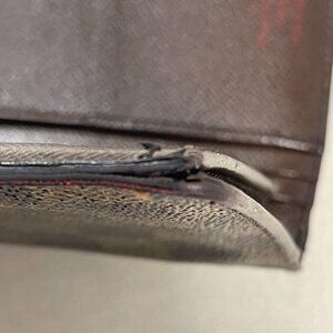 Corner and edge wear, some tarnishing of zipper pull, creasing at spine. Please see the pictures as they are part of the listing.