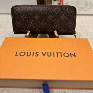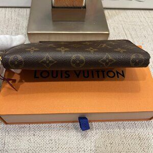 Louis Vuitton's classic Clémence wallet is an elegant and compact design offering multiple practical features. In iconic Monogram canvas, it is given a playful, feminine feel by its brightly colored leather zipper and lining. This wallet is in very good used condition. There are a few marks on the coin slots but overall, very good condition. Comes with LV Box & Shopping Bag.