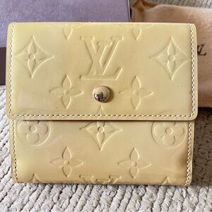 Authentic Louis Vuitton Porte Monogram Bi-fold Wallet M91167 Monogram Vernis - Beige