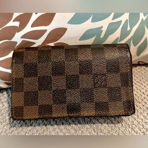 Elegant Louis Vuitton wallet in classic brown Damier monogram. Perfect for men or woman in for adding a touch of luxury to your everyday essentials.