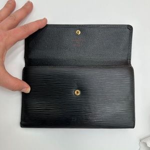 πŸ”₯🌟Louis Vuitton Porte Tresor Internationale wallet in black🌟πŸ”₯ 🌟LOUIS VUITTON Sarah Epi leather wallet/billfold. This wallet is crafted of embossed Epi leather. Polished gold toned snap that opens to a cross-grain partitioned leather interior, can add chain if desired.🌟 πŸ”₯πŸ”₯πŸ”₯πŸ”₯πŸ”₯πŸ”₯πŸ”₯πŸ”₯πŸ”₯πŸ”₯πŸ”₯πŸ”₯πŸ”₯πŸ”₯πŸ”₯πŸ”₯πŸ”₯πŸ”₯πŸ”₯πŸ”₯πŸ”₯ 🌟Embossed Epi Leather 🌟6 credit card slots 🌟two open slip pockets for bills 🌟single flap with press button closure. 🌟fold over press button closure coin pouch, 🌟pen holder Dimensions: Length: 7.5 in Height: 4.25 in Width: 1 in(approximate) πŸ”₯πŸ”₯πŸ”₯πŸ”₯πŸ”₯πŸ”₯πŸ”₯πŸ”₯πŸ”₯πŸ”₯πŸ”₯πŸ”₯πŸ”₯πŸ”₯πŸ”₯πŸ”₯πŸ”₯πŸ”₯πŸ”₯πŸ”₯πŸ”₯ πŸ”₯.πŸ”₯.πŸ‘‰πŸ» πŸ™€πŸŒŸALL OFFERS WELCOMED AND CONSIDERED πŸŒŸπŸ™€ πŸ‘ˆπŸ» πŸ”₯. πŸ”₯. πŸ‘‰πŸ» Item is preloved, but in excellent condition. It has been in storage and was barely worn before that. Before purchasing, please refer to the images for the exact condition of the item and feel free to ask questions!! πŸ‘ˆπŸ» 🌟Camera lightening and reflections may pick up tiny white/dark lint and/or create some color variations/shadows/glare spots/marks that are not actual defects. Please ask if unsure.Color may appear differently on varied monitors and device settings.🌟