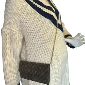 Authentic Louis Vuitton LV monogram Cambas in brown color outside fabric some fading inside little dirty I will provide a long gold hardware strap so you can wear it as a wallet on chain.