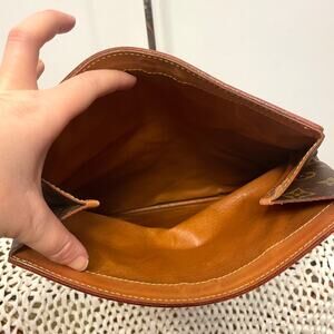 Great Vintage condition! The canvas is flawless with no cracks or visible wear. The pattern is vibrant. The leather is in good condition with normal marks consistent with age. Overall, the patina is beautiful. The small amount of hardware is lightly tarnished. *The zipper on the pocket is stuck and not functioning. The interior leather looks great with no notable flaws.