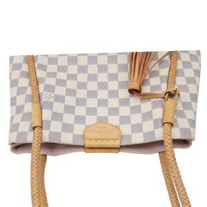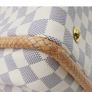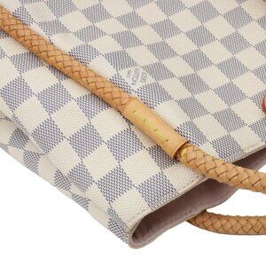 A chic Damier Azur tote featuring braided leather handles and a soft Rose Ballerine interior for a feminine touch. Lightweight, roomy, and elegant, perfect for effortless everyday luxury.
