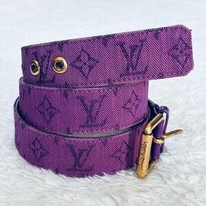 Louis Vuitton Purple Denim Monogram M0177 Leather Unisex Rare Belt Size 35/90