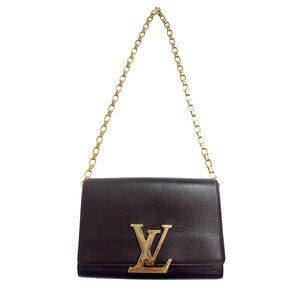 Louis Vuitton Quetsche Box Calfskin Leather Chain Louise GM Clutch Bag in Dark P
