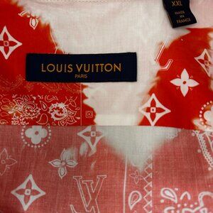 Louis Vuitton Red Bandana Bleached Short Sleeve Button Up Shirt