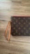 Elegant Louis Vuitton interior with striking red and black stripes. Features a tan leather label with embossed branding.