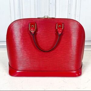 ✨ Authentic Louis Vuitton Alma PM in striking red Epi leather with structured silhouette, dual rolled leather handles, and gold-tone hardware. A timeless LV classic, perfect for both everyday chic and elevated occasions.