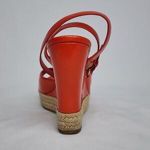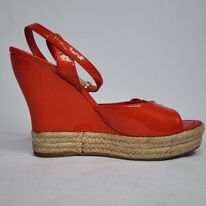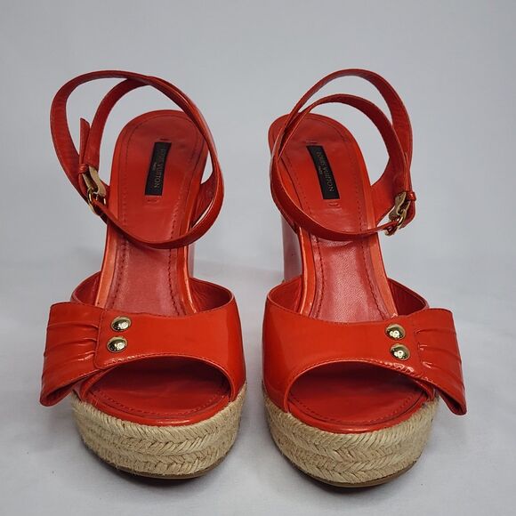 Louis Vuitton Red Patent Leather Espadrille Wedge Sandals Gold Hardware Size 40
