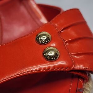 Crafted from glossy red patent leather