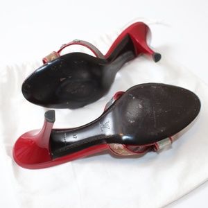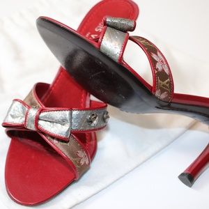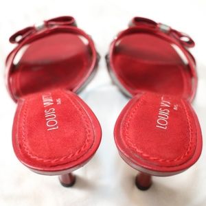 Louis Vuitton Red Satin Cherry Blossom Slide Heels