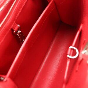 This gorgeous red Capucines BB purse has a leather lining with a compartmented interior with zipped pocket, silver hardware, snap hook to secure belongings, and 4 protective metal bottom studs to protect the base of the bag. This is the perfect classic, elegant, and versatile bag. The adjustable strap allows it to be worn over the shoulder OR crossbody, which makes it the perfect bag for a casual day out and about. But, it's also removable, which allows you to carry this bag by the handle, making it the perfect dressy bag for a nice brunch or dinner with friends.