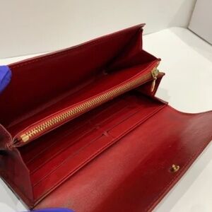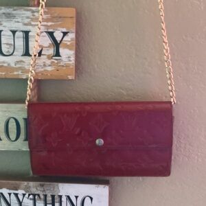 Preowned authentic Louis Vuitton Sarah wallet shows wear but lot of life left. Add chain to wear as crossbody available. Wallet conversion kit not included.