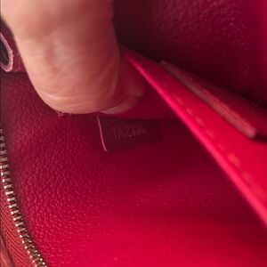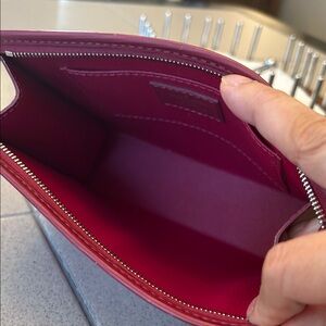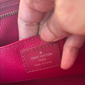 Elegant Louis Vuitton toiletry bag. Rich red color. Textured design. Compact and stylish. Slightly use. Authentic classic style.