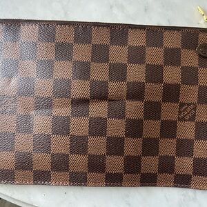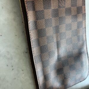 Vibrant red with sleek black stripes. Iconic Louis Vuitton label.